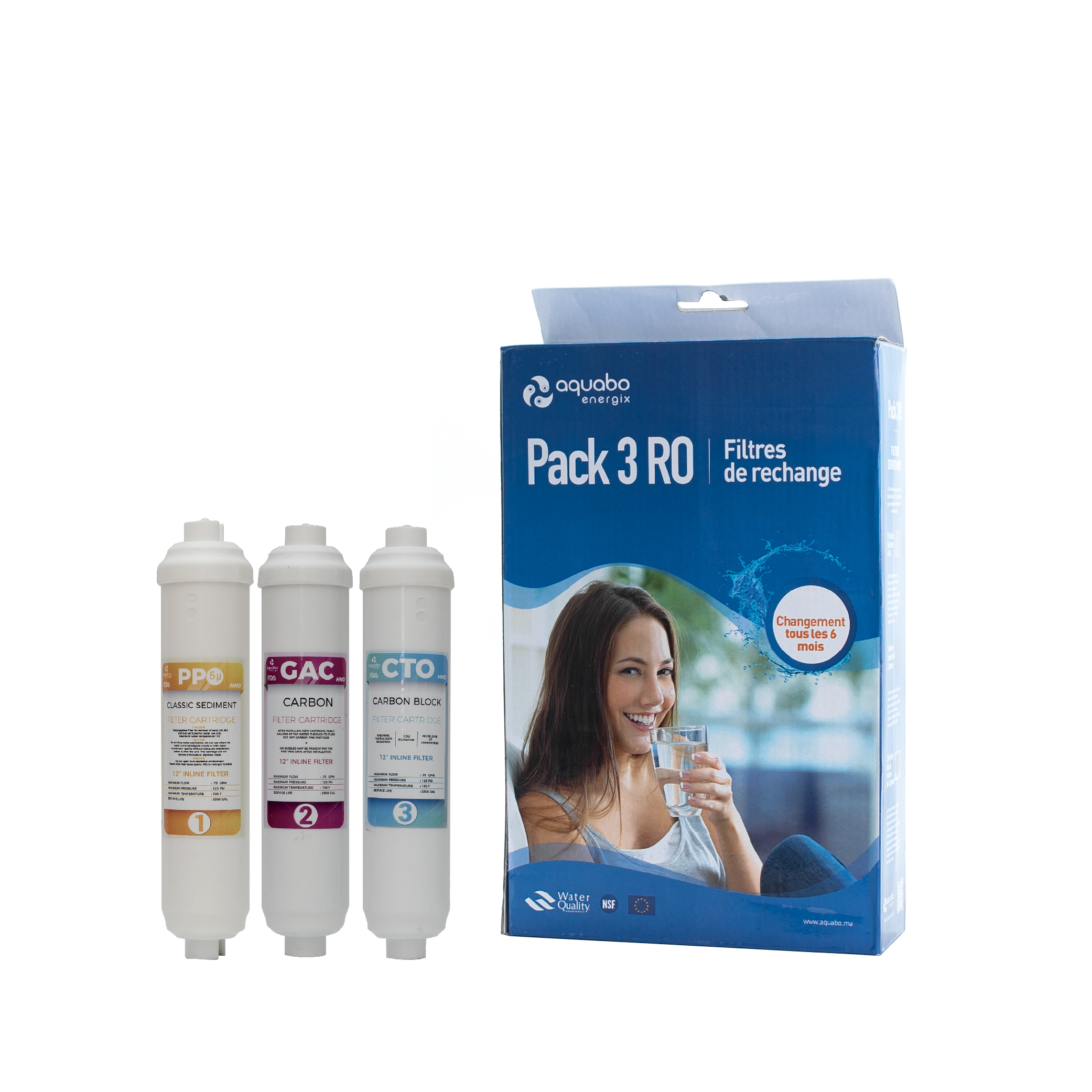 Pack de 3 préfiltres de remplacement (1,2,3 étapes) HND 12’’